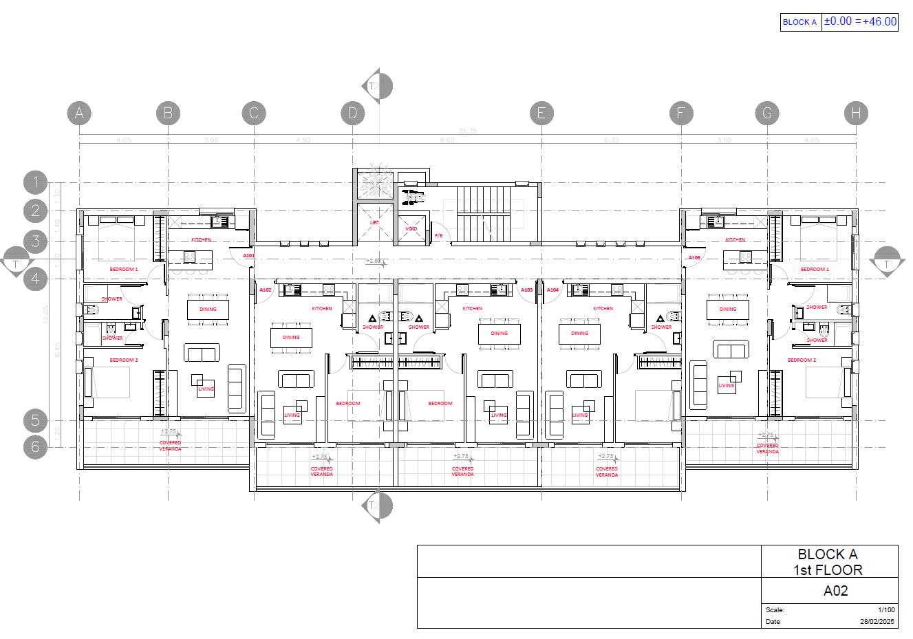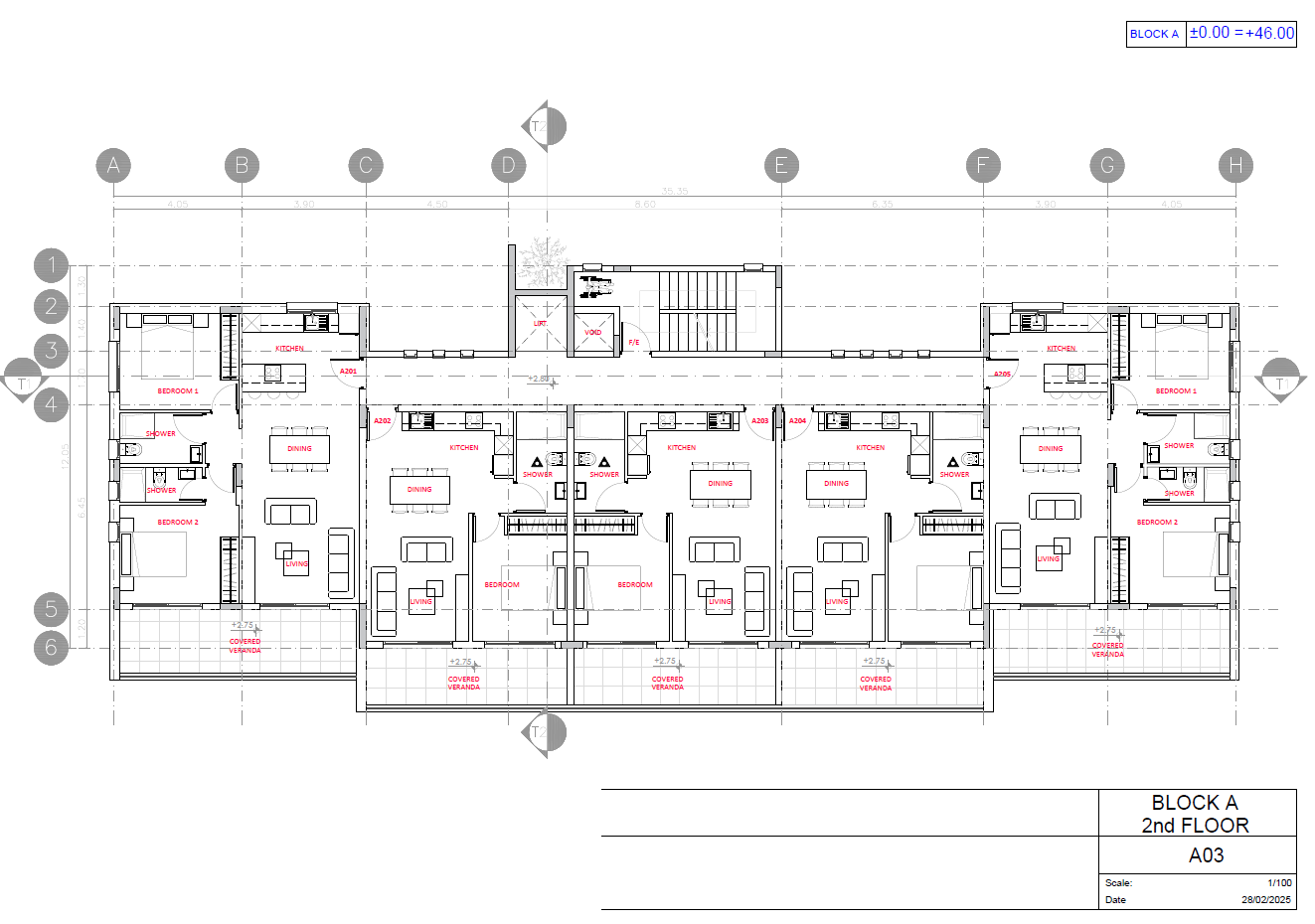 A201 | Reserved | 2 Bed | 2 Bath | Internal Covered: 77 m2 | Covered Veranda: 18 m2 | Total Covered: 95 m2