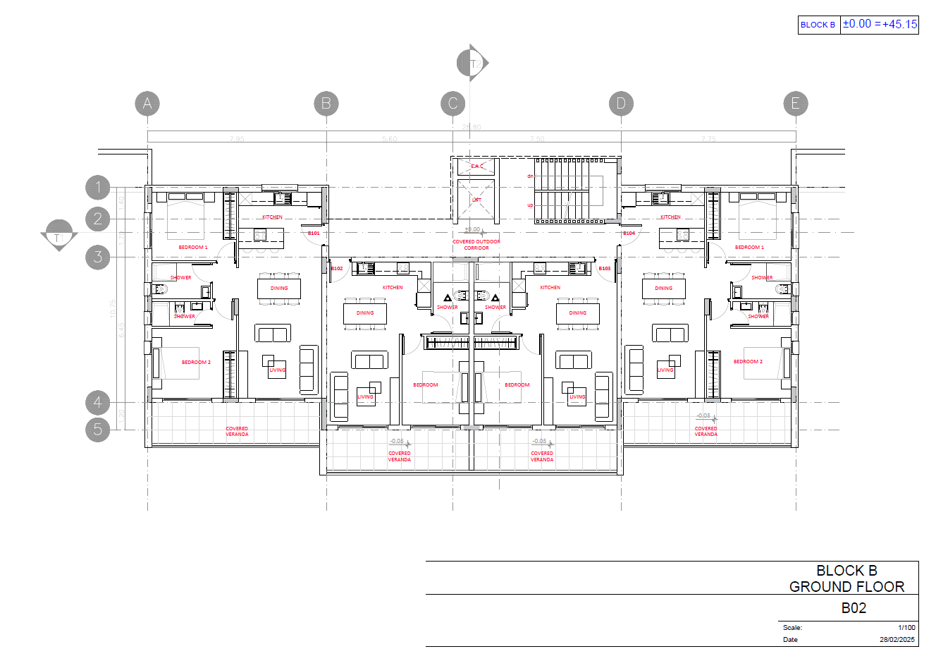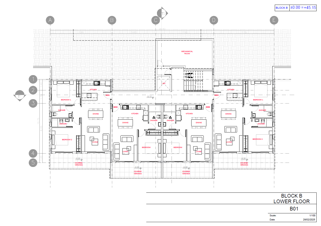 B01 | Reserved | 2 Bed | 2 Bath | Internal Covered: 77 m2 | Covered Veranda: 18 m2 | Total Covered: 95 m2